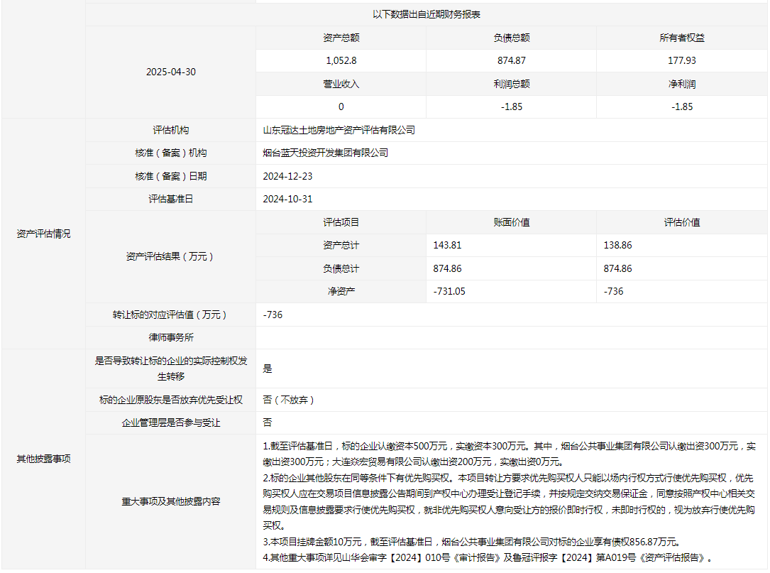 轉(zhuǎn)讓方:煙臺公共事業(yè)集團有限公司