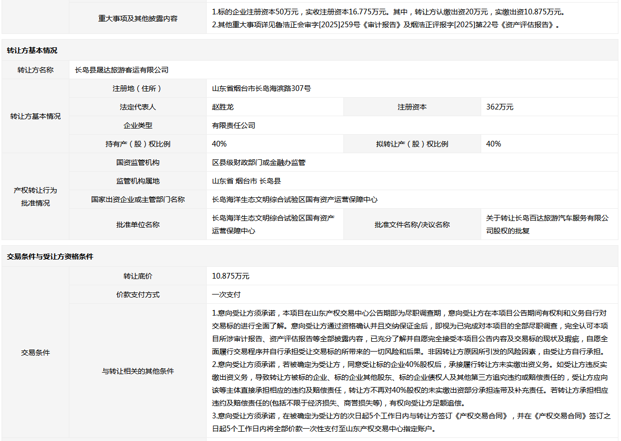 轉讓方:長島縣晟達旅游客運有限公司