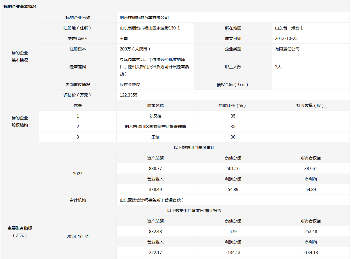 煙臺祥瑞旅游汽車有限公司35%國有股權(quán)