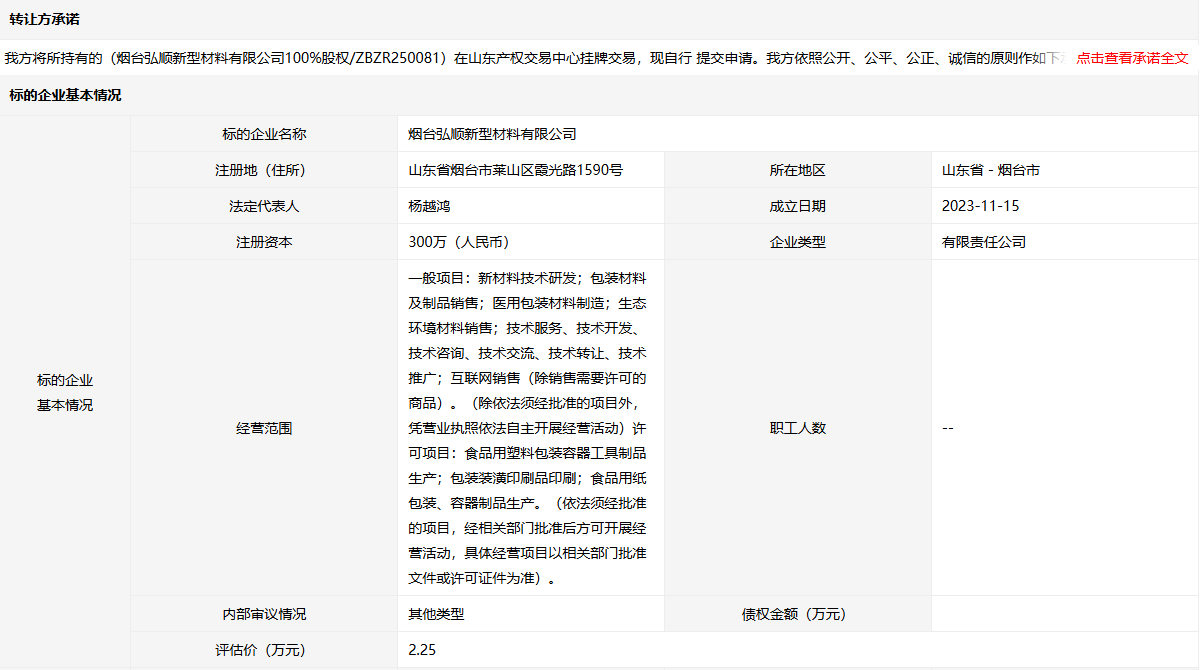 煙臺(tái)弘順新型材料有限公司100%股權(quán)
