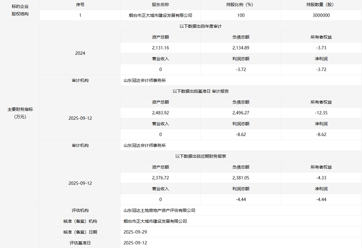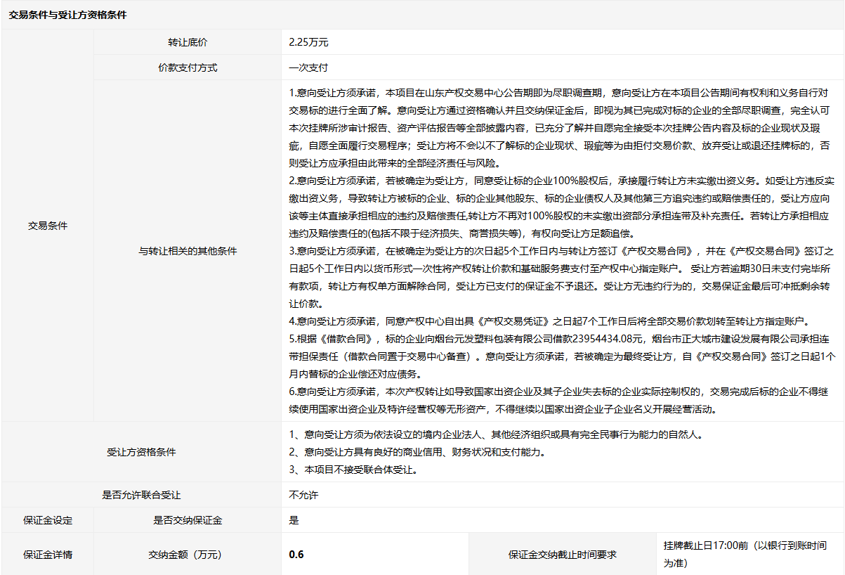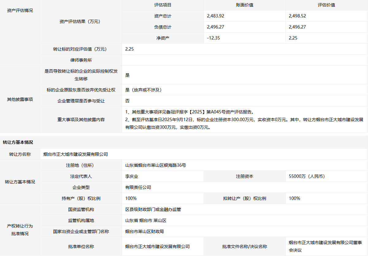 轉(zhuǎn)讓方:煙臺(tái)市正大城市建設(shè)發(fā)展有限公司