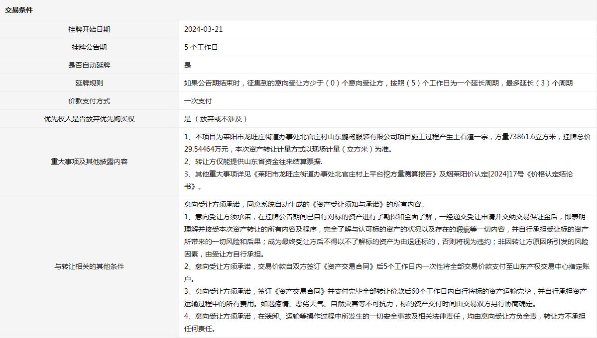 掛牌起止日期:2024年03月21日至2024年03月27日