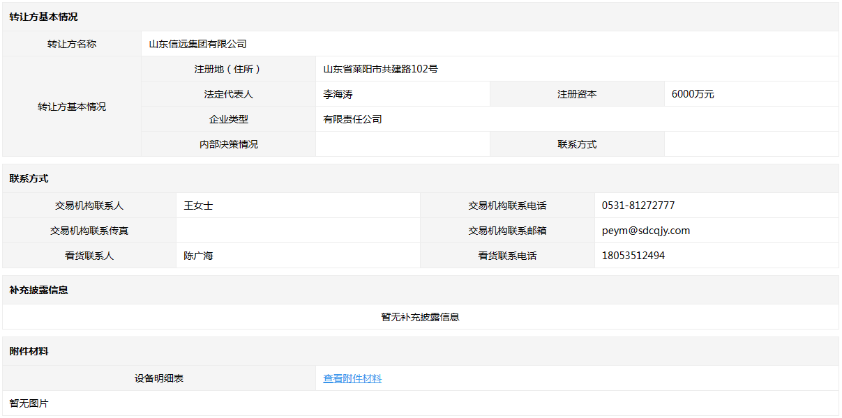 山東信遠(yuǎn)集團(tuán)有限公司持有的舊設(shè)備一宗