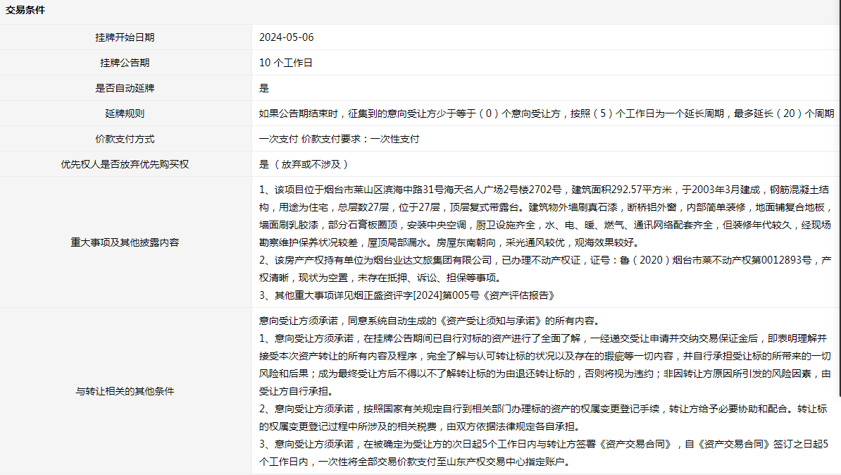 轉(zhuǎn)讓方:煙臺(tái)業(yè)達(dá)文旅集團(tuán)有限公司