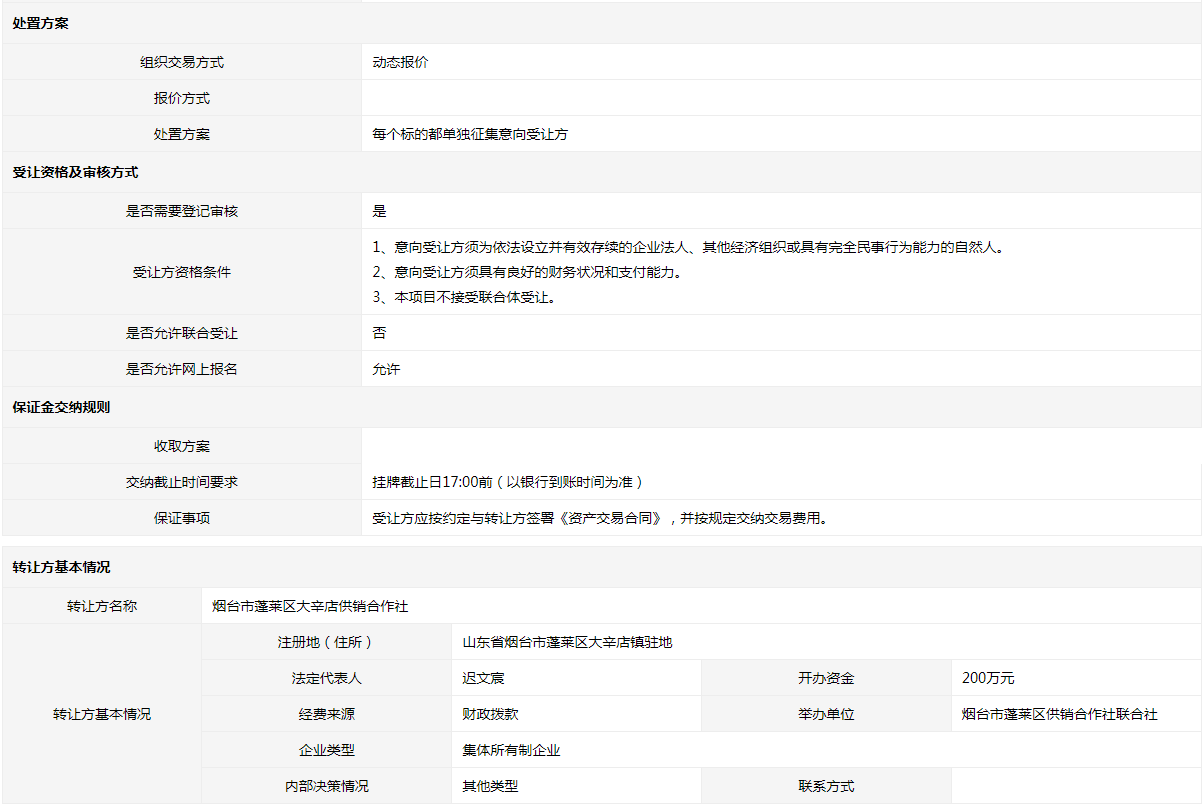 轉讓方:煙臺市蓬萊區(qū)大辛店供銷合作社