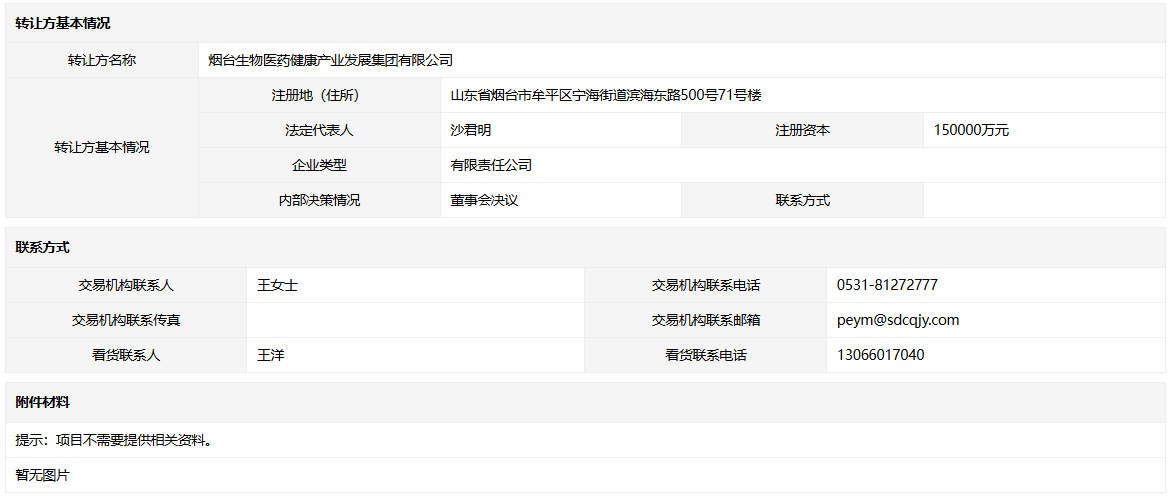 - 轉(zhuǎn)讓方:煙臺(tái)生物醫(yī)藥健康產(chǎn)業(yè)發(fā)展集團(tuán)有限公司