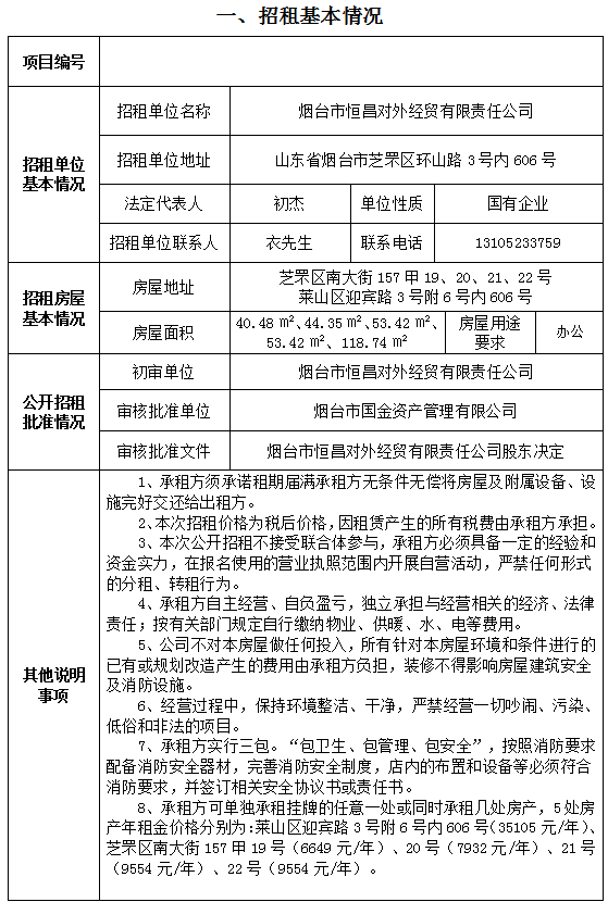 煙臺(tái)市恒昌對(duì)外經(jīng)貿(mào)有限責(zé)任公司5處非住宅房產(chǎn)
