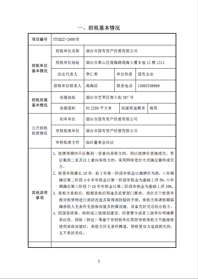 煙臺市南大街267號1-7層(除一樓東側(cè)門頭房)、東側(cè)停車場招租公告